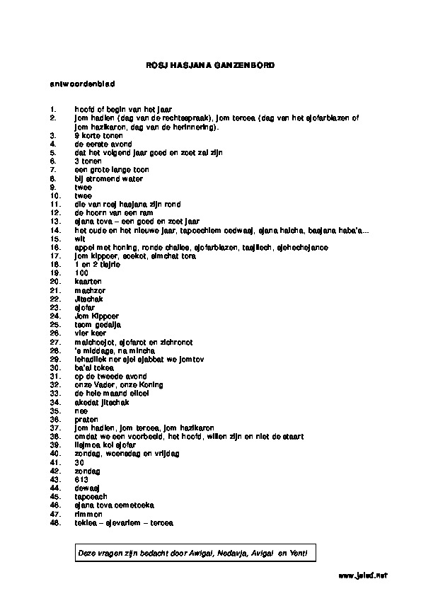 Rosj Hasjana dalet ganzenbordspel antwoorden