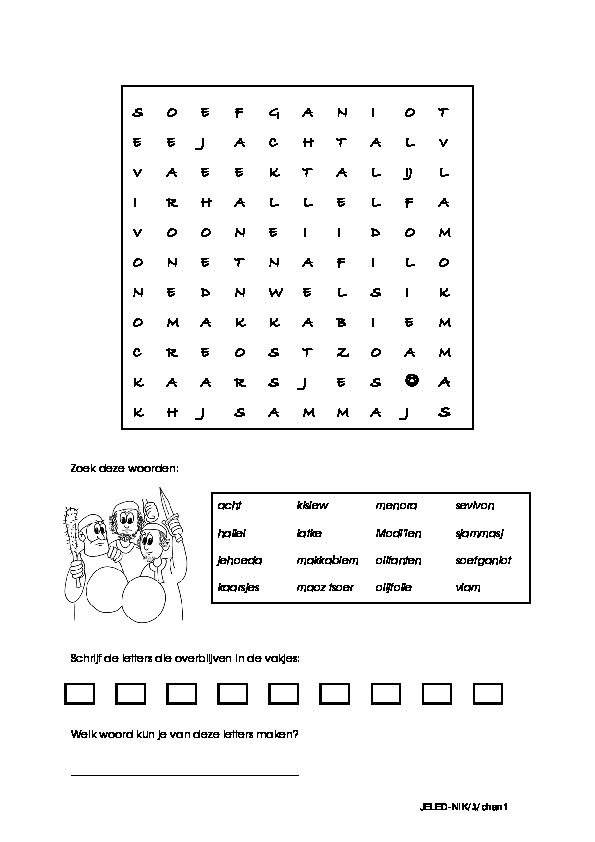 Chanoeka gimmel werkblad woordzoeker