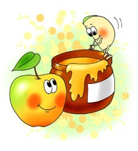 Op Rosj Hasjana eten we een stukje zoete appel met honing. We hopen dat het nieuwe joodse jaar net zo zoet zal zijn als de appel en de honing bij elkaar en dat we heel veel goede daden zullen doen.